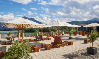 If you want to top off your Festspielhaus Neuschwanstein experience before or after your visit to the theatre, the best thing to do is enjoy a sparkling glass of sparkling wine or a wonderful cocktail on what is probably the most beautiful rooftop bar terrace in the Allgäu.